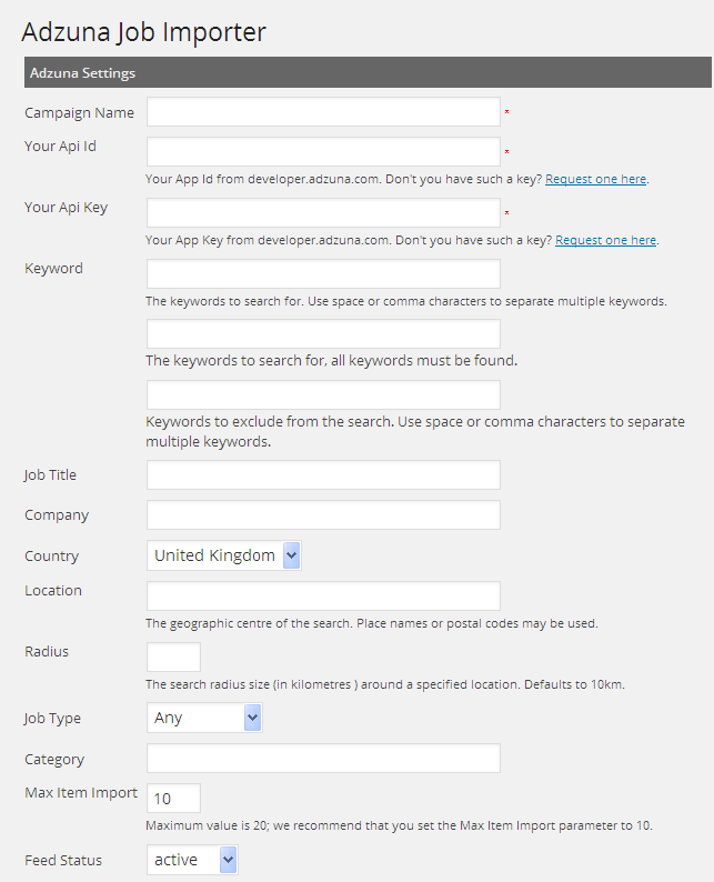 Adzuna Settings