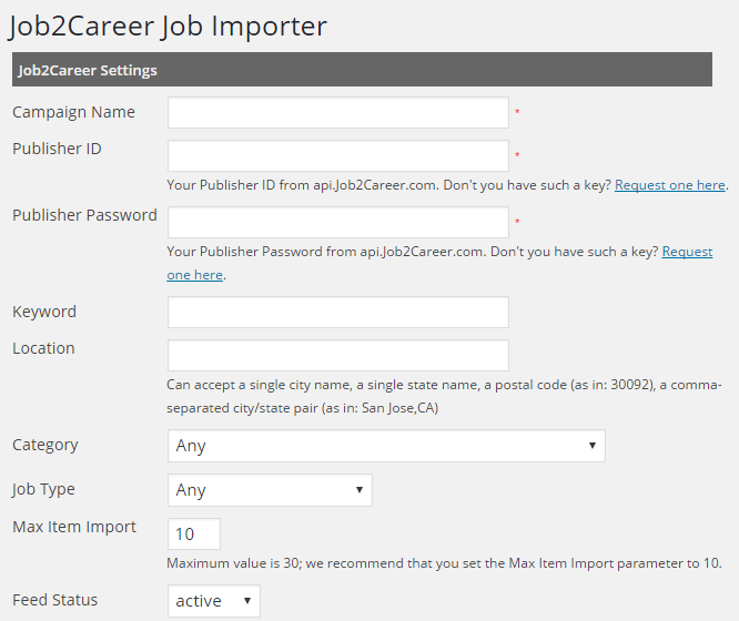 Job2Career Job Importer Plugin Import job from Job2Career according to your given parameter.